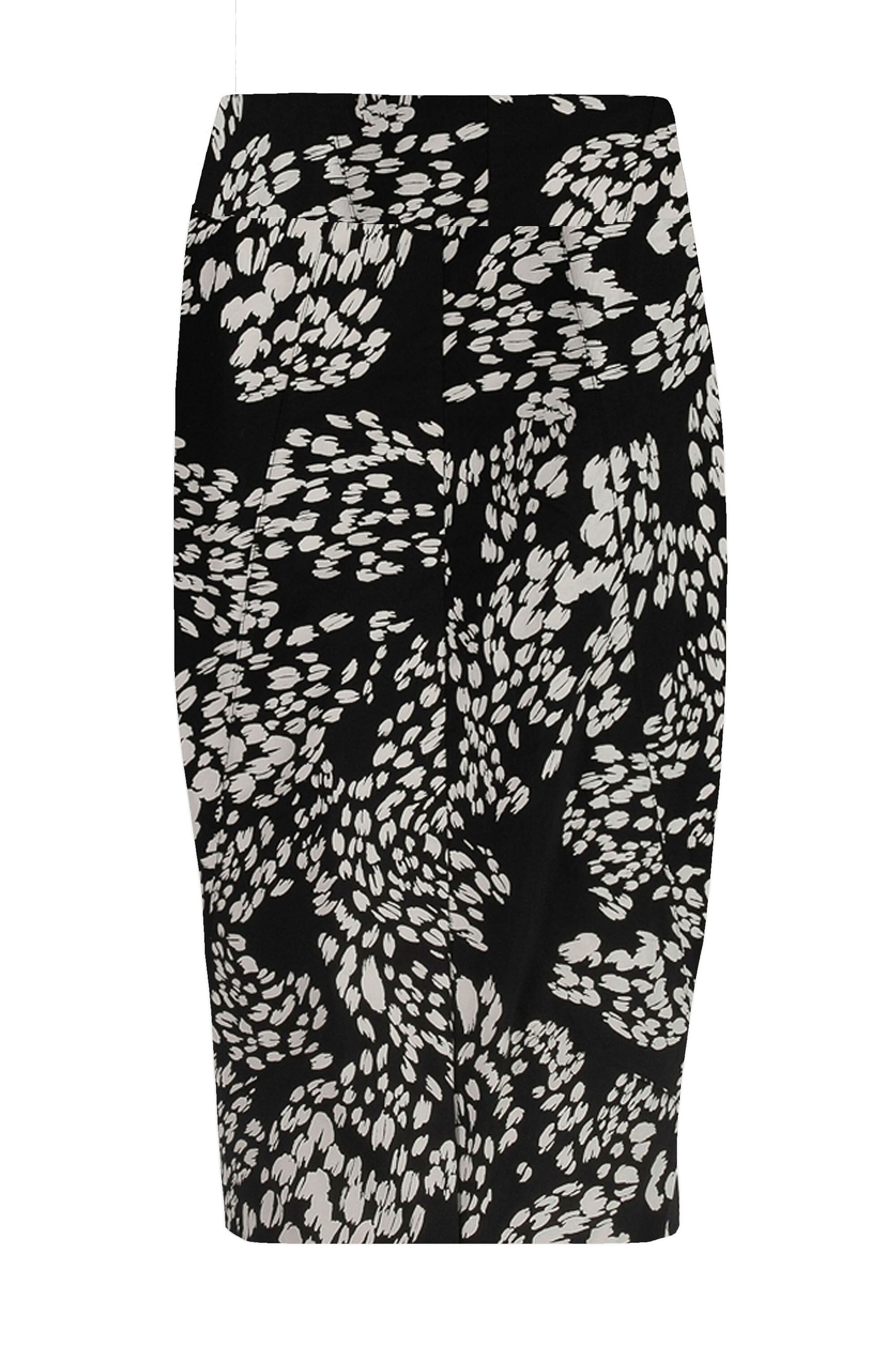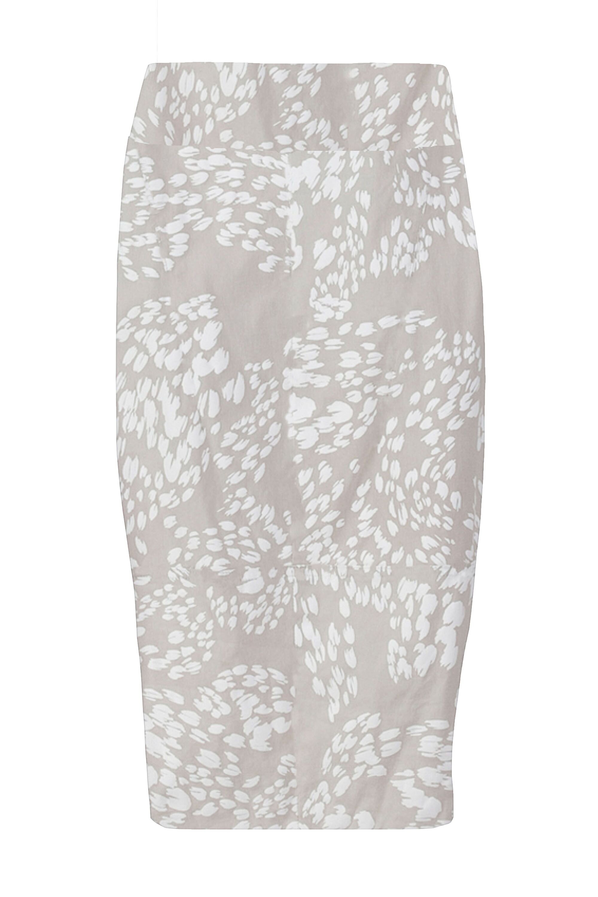 In the new season's Paw print a knee length Skirt with side panels and stepped hemline.  Pull on Basque waist and split at back. Made in our exclusive European lightweight stretch Cotton Acrobat fabric for comfort, breathability and easy care.
