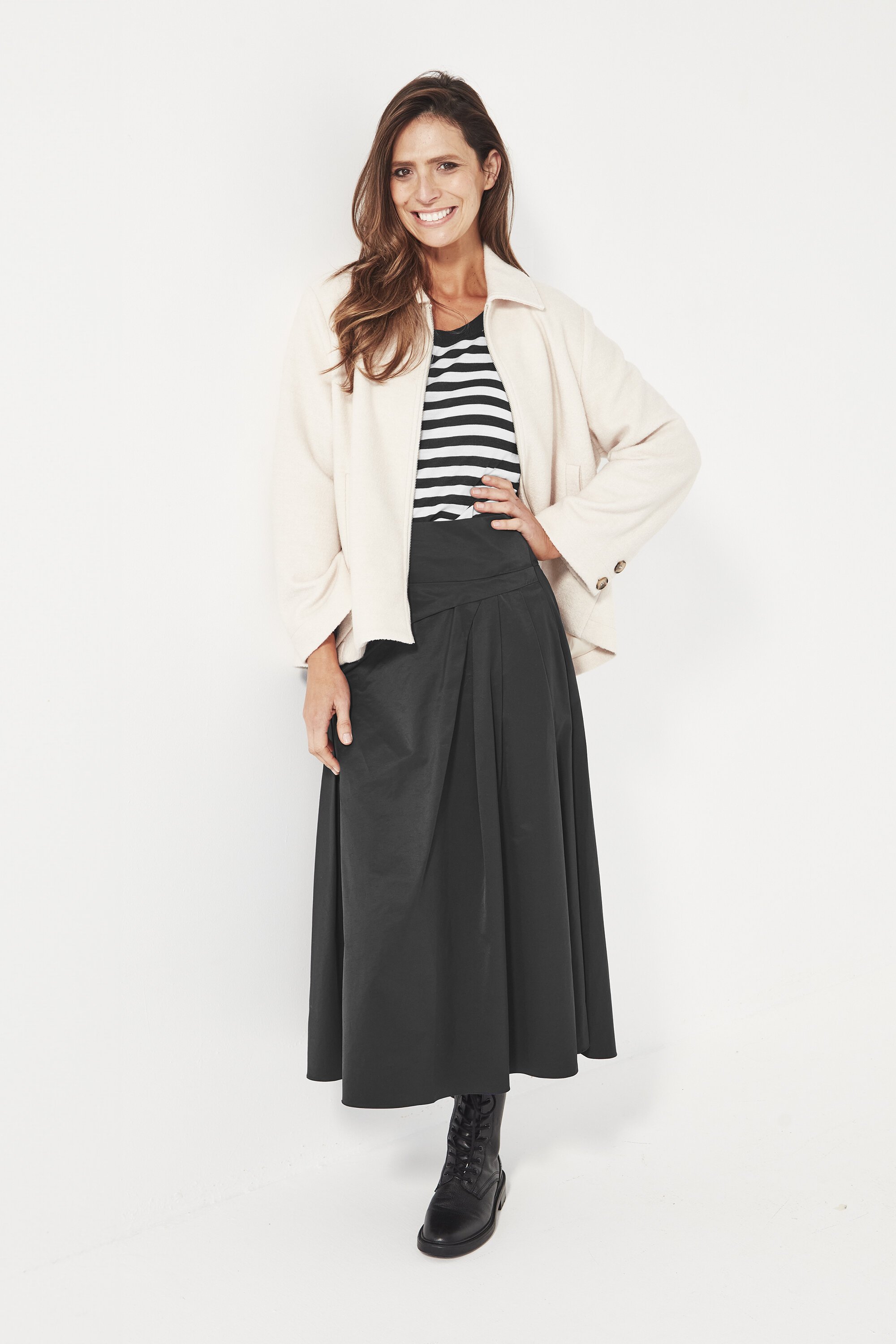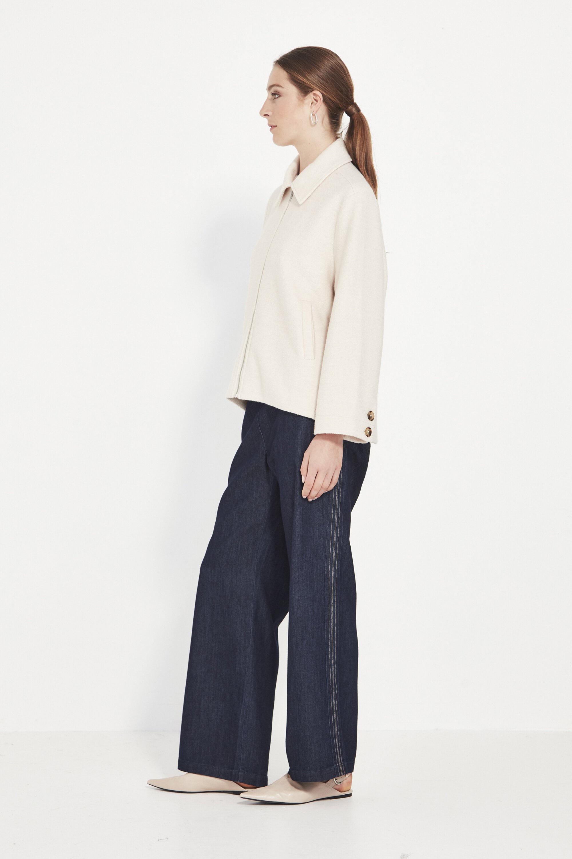 A two-button cuff adds subtle tailoring, balancing structure with ease. Fully lined for comfort and a smooth finish, the Hazel Jacket pairs effortlessly with denim, soft pants, or tailored staples — a versatile piece that elevates everyday dressing with quiet sophistication.