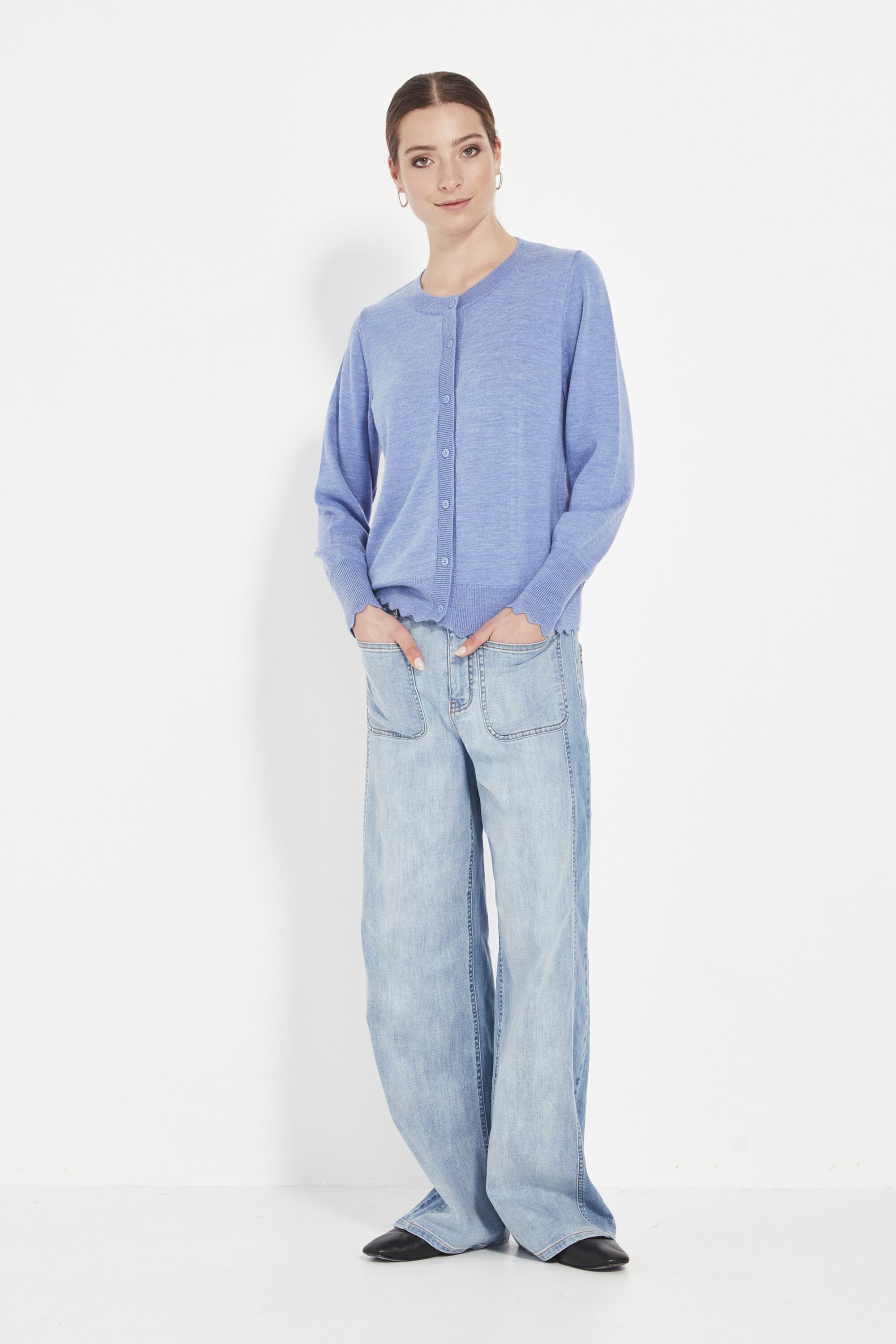 Delicate scallop detailing along the hem and cuffs adds soft texture and a subtle romantic touch, elevating the silhouette while keeping it effortlessly wearable. Lightweight and versatile, the Marcella Cardi layers beautifully over tees, blouses, and dresses — a polished essential for everyday styling.