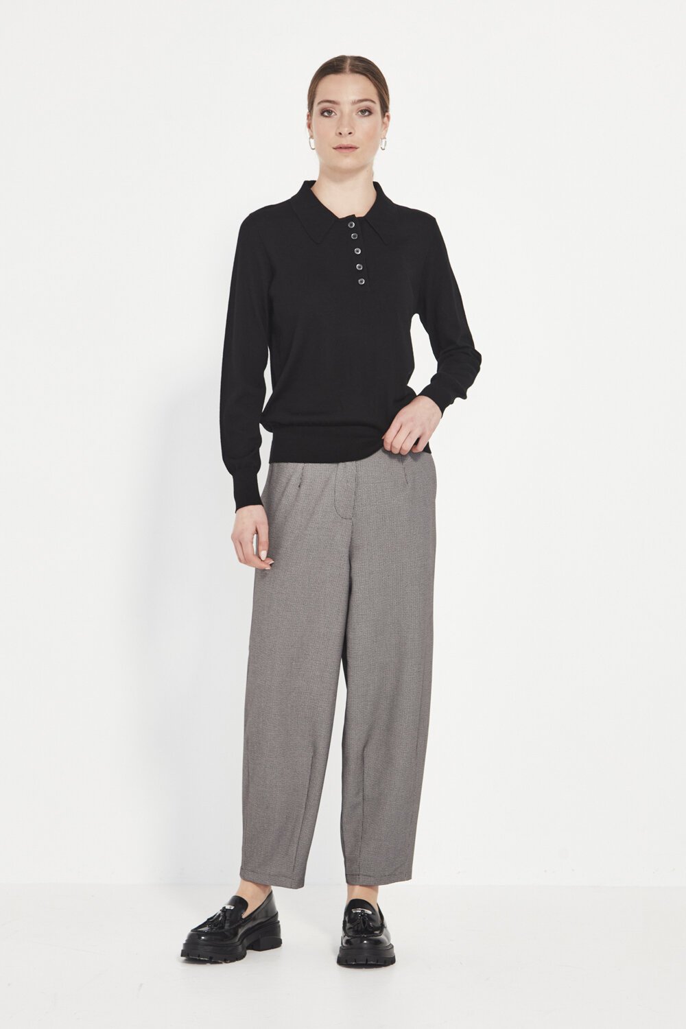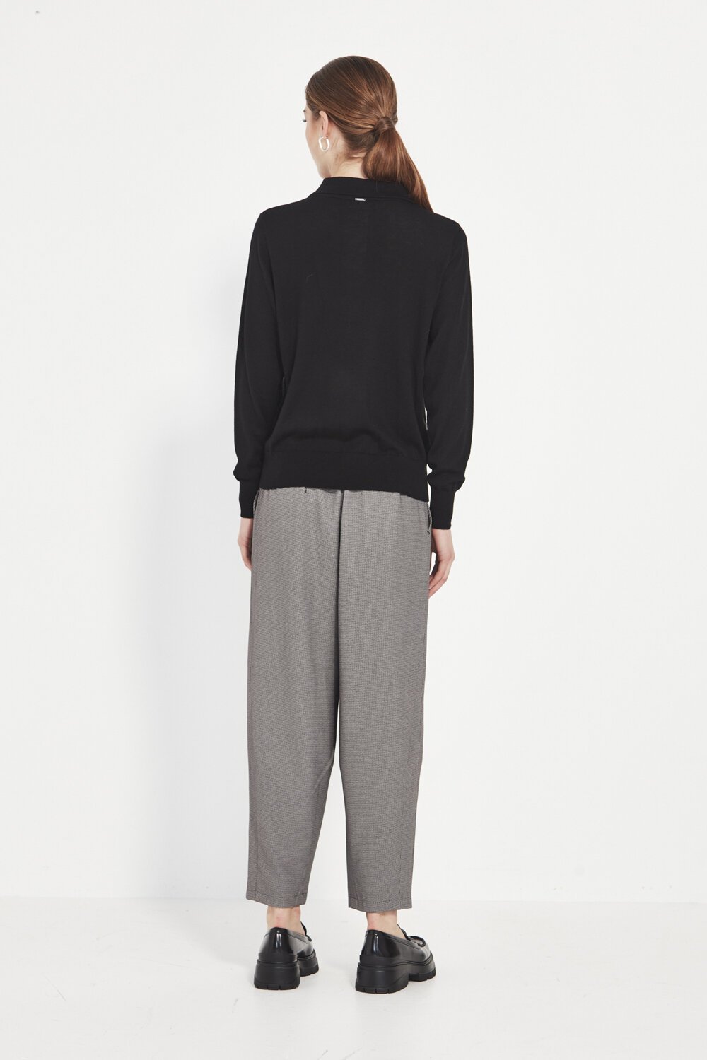 Long sleeves and a hip-length finish create an easy, wearable silhouette — perfect for layering under coats or pairing with tailored pants and denim. Light, warm, and quietly polished, it’s a versatile piece for every season.