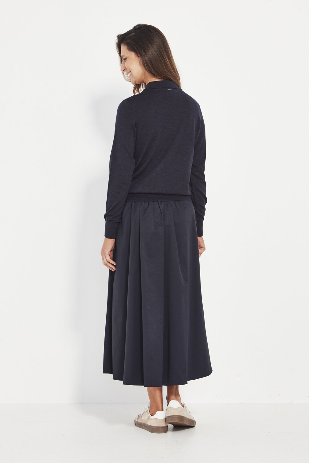 Long sleeves and a hip-length finish create an easy, wearable silhouette — perfect for layering under coats or pairing with tailored pants and denim. Light, warm, and quietly polished, it’s a versatile piece for every season.