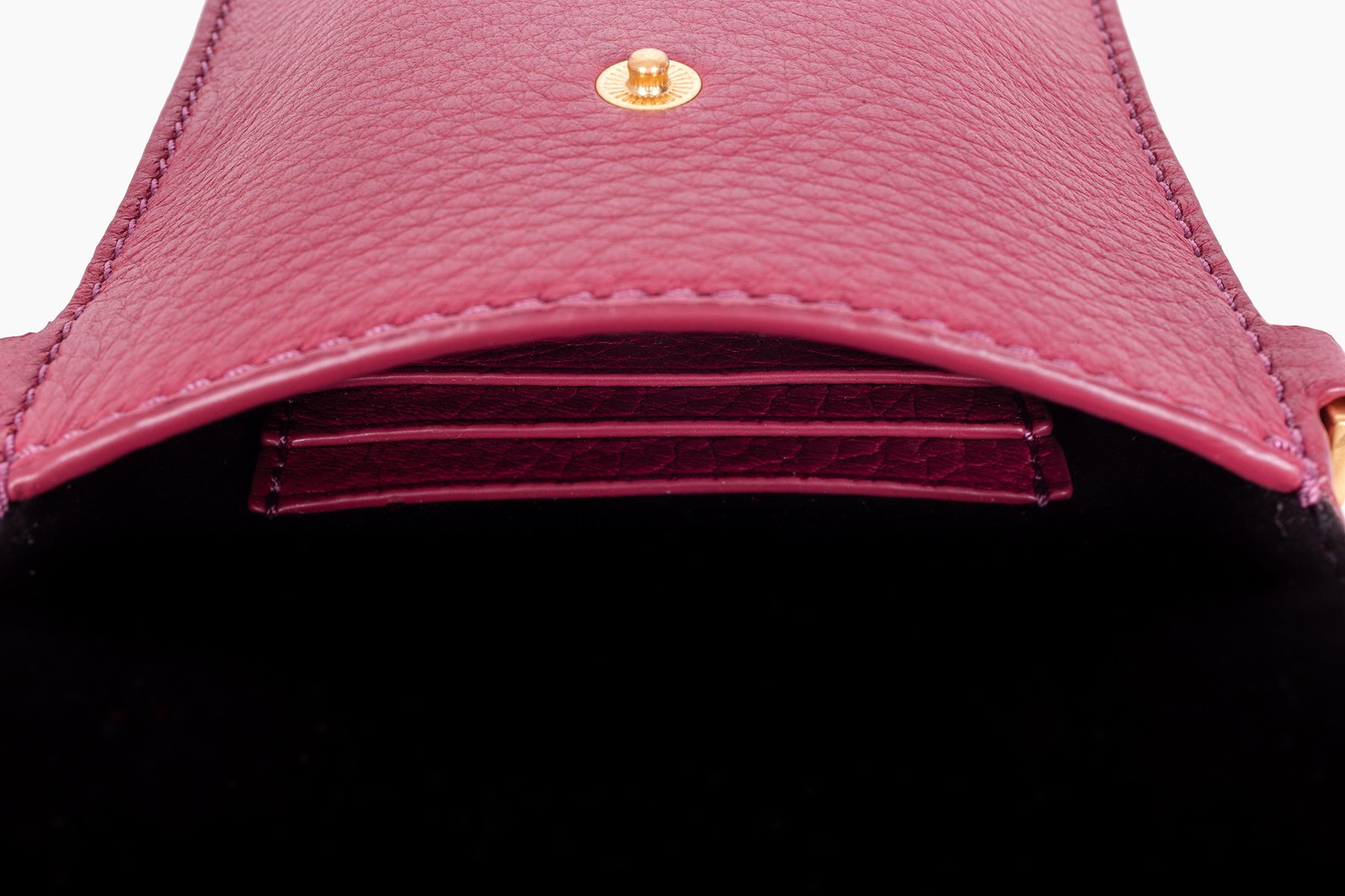 Designed to carry just the bare essentials, cards and phone, Luci is the chicest companion and life of the party who knows how to work a room. Constructed from buttery soft New Zealand Premium Deer Nappa, Luci features a bonded faux suede lining, three interior card slots and a covered snap button closure and a custom gold chain.