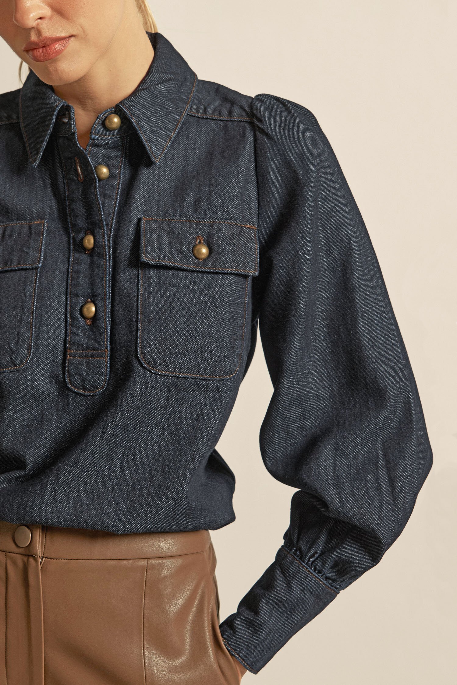 • an elevated winter denim top with a luxuriously soft hand-feel